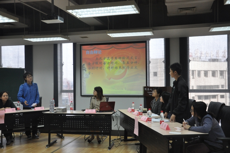 2012年11月2日2012级哲学党支部在伟德国际victor1946多功能厅举行了以“红色青春新跨越”为主题的辩论赛。本场辩论赛的辩题是:青年党员是走专业型培养路线还是基层培养路线。正方队员有:一辩黄富强,二辩侯瞳瞳,三辩沈艽;四...
